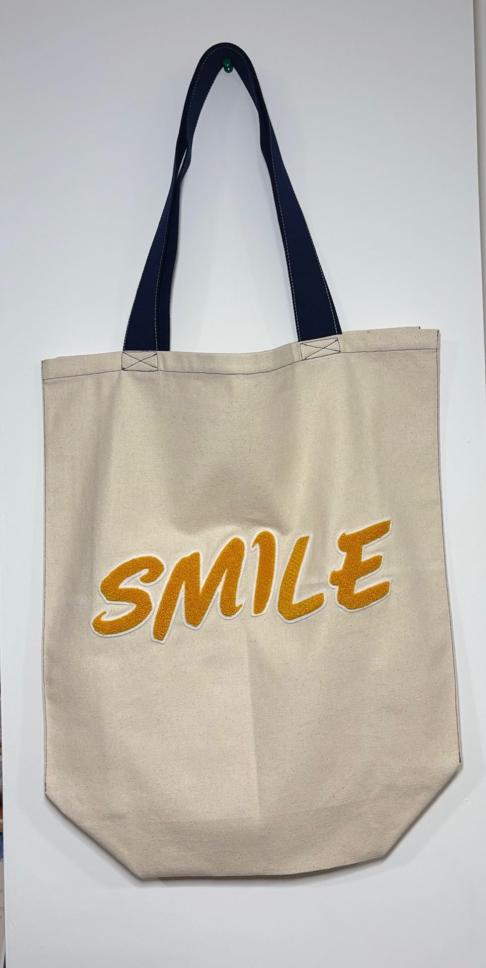 Handmade from organic cotton canvas, the SMILE Mindful Shopper Tote Bag is your cheerful, go-to eco shopper. With sturdy navy 40mm recycled webbing straps and bold mustard “SMILE” letters, it’s strong enough for heavy groceries yet stylish enough for everyday errands. Roomy, reliable and thoughtfully made in small batches, it’s a feel-good tote for conscious, joyful living.
