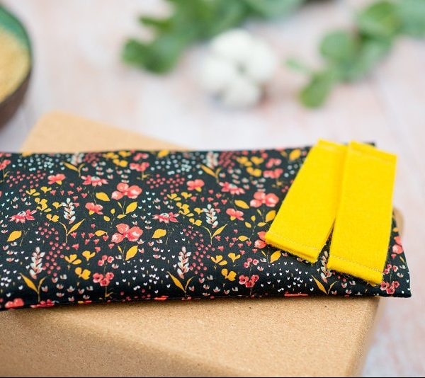 Relaxation Eye Pillow – Organic Cotton Black Flower Garden
